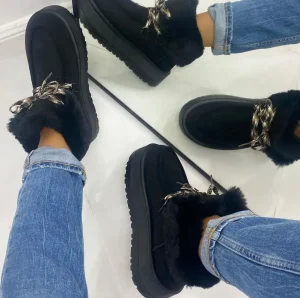 Primi Tacchi Jolly – Stivaletto Eskimo Boots Pelliccia Gomma Alta Nero Sale
