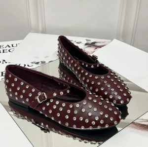 Primi Tacchi Haven – Scarpe Donna Ballerine Cinturino Borchie Casual Bordeaux Fashion