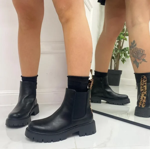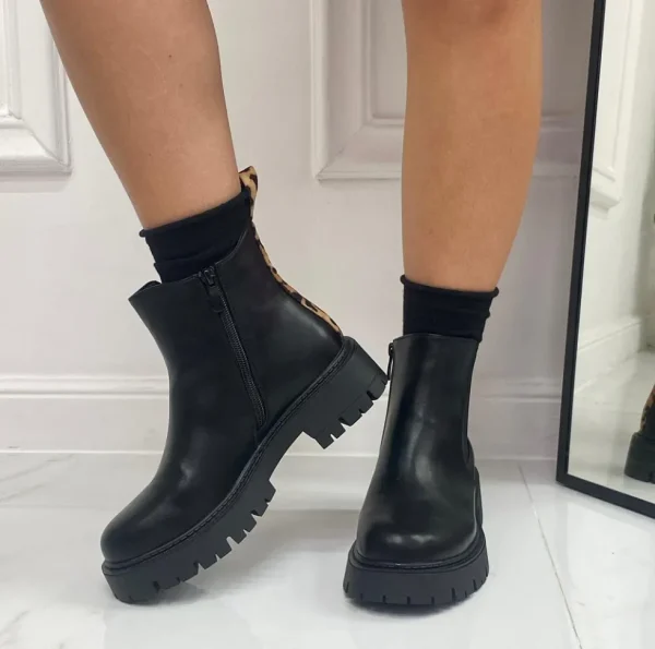 Primi Tacchi Alya – Stivaletto Donna Anfibio Punta Tonda Leopardato Comodo Nero Discount