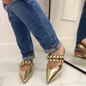 Primi Tacchi Cecilia – Sabot Donna Punta Scarpe Casual Oro Hot
