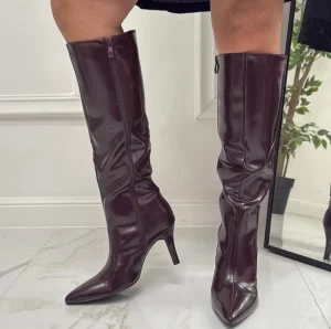 Primi Tacchi Chic – Stivale Donna Lucido Alto Punta Cerniera Tacco Spillo Elegante Sale