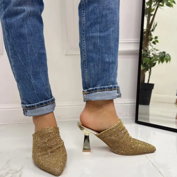 Primi Tacchi Gemma – Décolleté Donna Tacco Spillo Punta Strass Oro Fashion