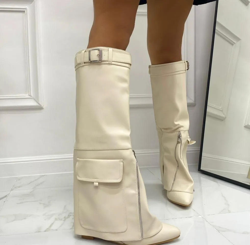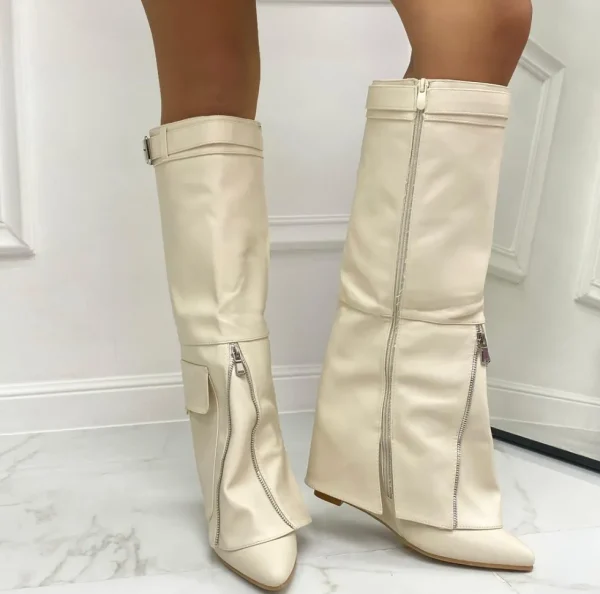 COLORE: BEIGE Questo stivale dona al piede un effetto elegante e particolare. Le sue caratteristiche sono: la punta, la zeppa e il tessuto in eco-pelle. Non ti stancherai mai di indossarli e sarai sempre all’ultima moda e cool, un accessorio così ti farà sentire stupenda in ogni circostanza. Perfetto per abiti corti, gonne Jeans o pantaloni. Può essere adatto per eventi come: feste, party, cocktail party, brunch e cerimonie. Ha una calzata regolare.