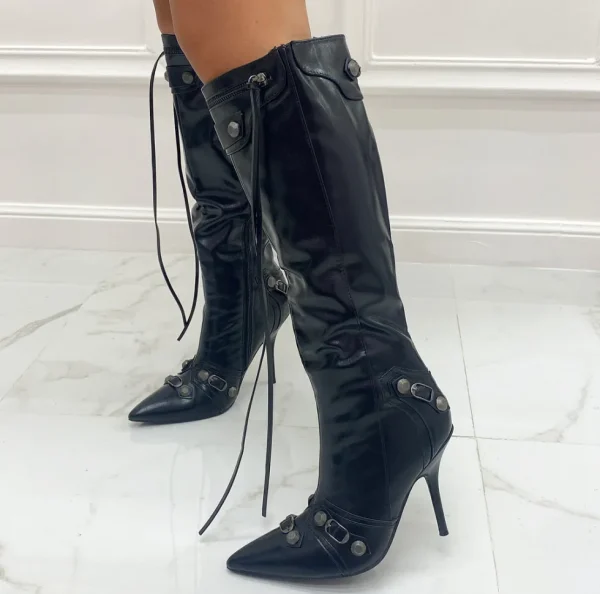 Primi Tacchi Grecia – Stivali Donna Alto Tacco Spillo Punta Nero Best