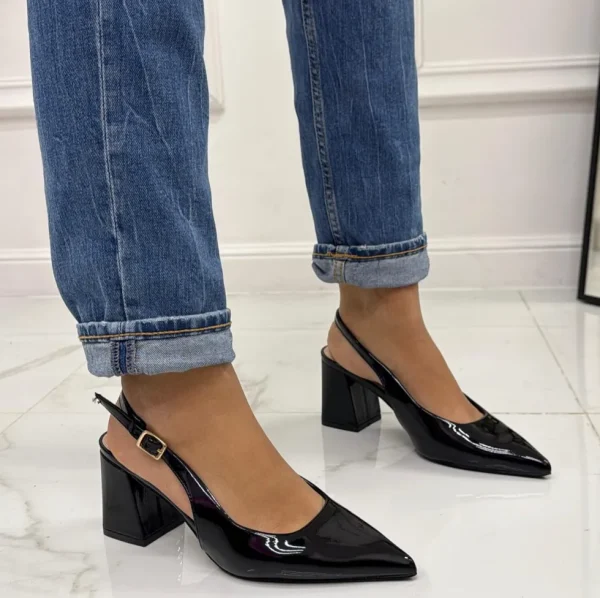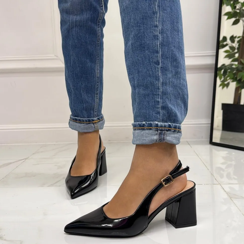 Primi Tacchi Leyla – Decolleté Donna Punta Scarpa Tacco Quadrato Vernice NERO Discount