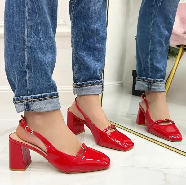 Primi Tacchi Lisa – Décolleté Donna Scarpa Cinturino Tacco Quadrato Elegante Rosso Hot