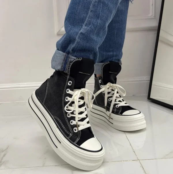 COLORI: NERA – BORDEAUX – JEANSPer affrontare le tue giornate lavorative, o per fronteggiare giornate impegnative, ti proponiamo questa stupenda sneakers. Indossata si posa al piede con comodità, elemento portante che ogni donna ricerca per sentirsi spensierata. Le sue peculiarità sono: la punta tonda, la zeppa alta 4 cm e mezzo, il gambale 11cm ed i lacci . Possono essere affiancati a capi come: jeans, leggings, shorts ed ecc… Hanno una calzata regolare.