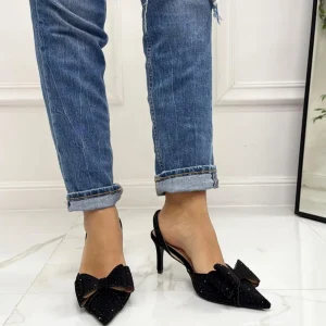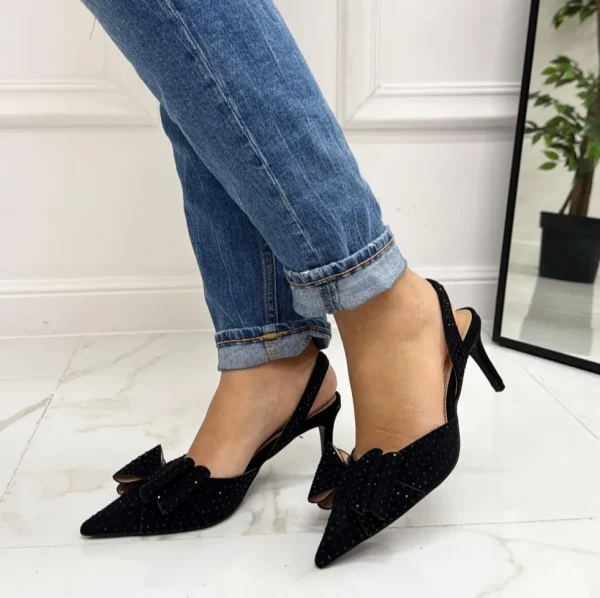 Primi Tacchi Queen – Decolleté Donna Punta Scarpa Tacco Basso Strass Nero New