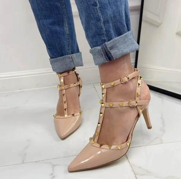 Primi Tacchi Rosalia – Décolleté Donna Cinturino Tacco Spillo Basso Borchie Elegant NUDE Fashion