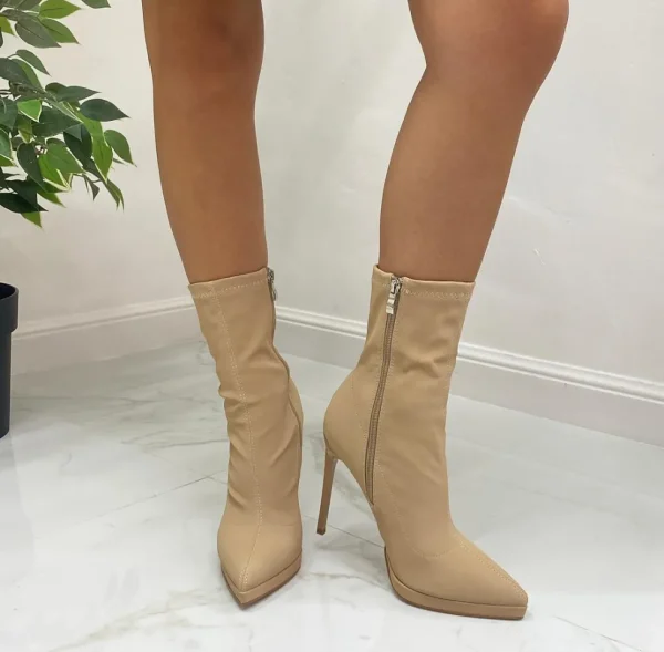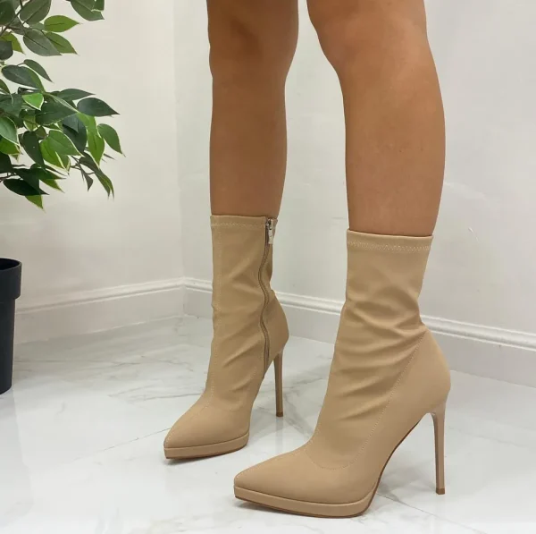 COLORI: BEIGE – NEROQuesto stivaletto è un accessorio che non può mai mancare nel guardaroba femminile.. Indossato accompagna perfettamente il capo della donna che utilizza, regalandole comodità e sex-appeal, due caratteristiche che ogni donna ricerca in un accessorio. Le sue particolarità sono: il tacco a spillo 12 cm, la punta e il tessuto in lycra. Può essere adatto per qualsiasi momento della giornata in cui decida di utilizzarlo e per eventi importanti. Possono essere abbinati capi come: shorts, gonne, vestitini, gonnelloni ed ecc.. Hanno una calzata regolare.