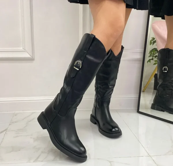 Primi Tacchi Zelda – Stivale Donna Alto Punta Tonda Fibbia Nero Clearance