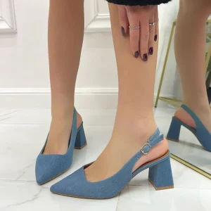 Primi Tacchi Chantal – Decolleté Donna Punta Scarpa Tacco Quadrato Denim Outlet