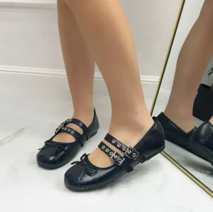 Primi Tacchi Haven – Scarpe Donna Ballerine Cinturino Borchie Casual Nero Best