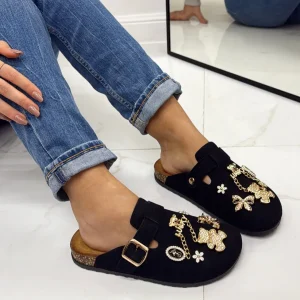 Primi Tacchi Luna – Sabot Mules Pantofolina Donna Flat Punta Tallone Scoperto Nero Clearance
