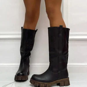 Primi Tacchi Asha – Stivale Donna Alto Punta Tonda Donna Fibbie Nero Hot