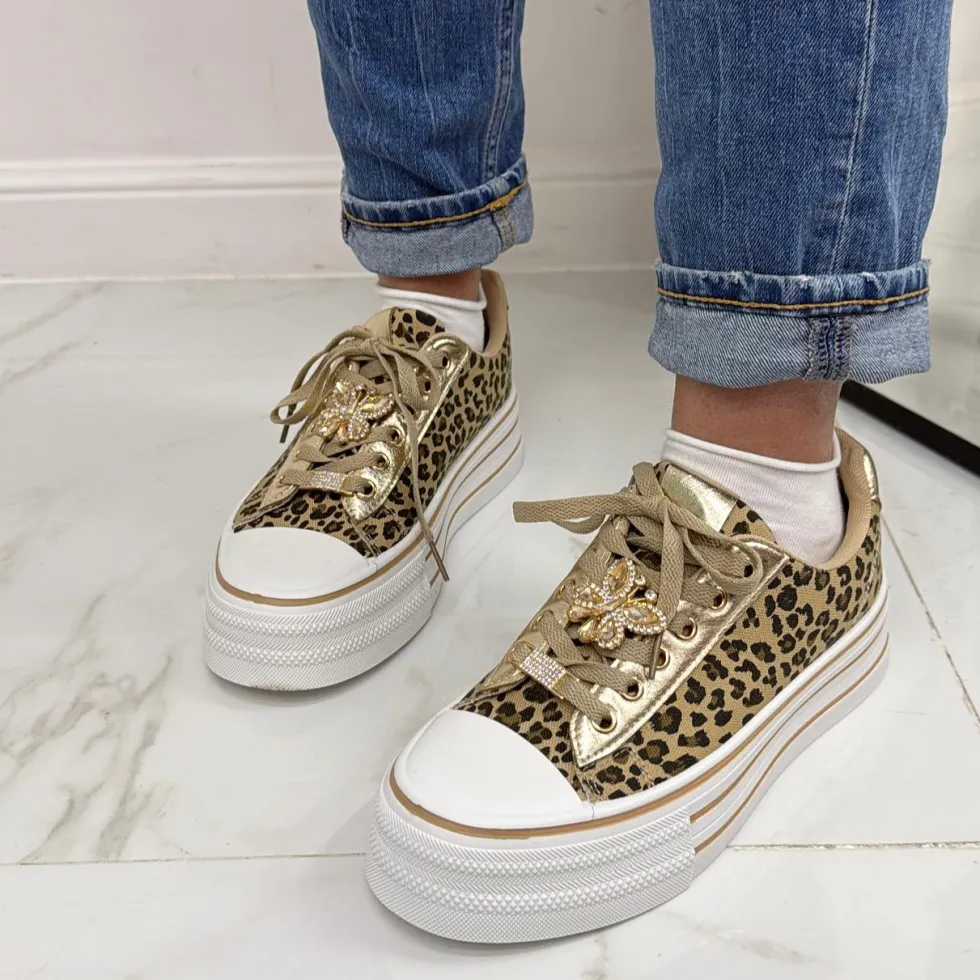 Primi Tacchi Addison – Sneakers Donna Scarpe Ginnastica Lacci Casual Comodo Leopard Clearance
