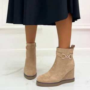 Primi Tacchi Aude – Stivaletto Donna Scarpe Zeppa Punta Strass Beige Discount