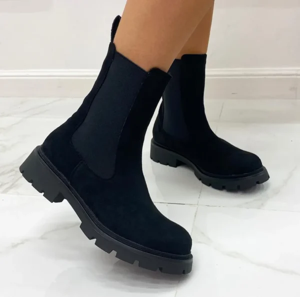 COLORE: NERO Questo stiletto è davvero unico nel suo genere. Indossato accompagnato perfettamente il capo della donna che decide di utilizzare. Indossati rendono la donna sicura di sé in qualsiasi contesto essa si trovi. La sua particolarità è il tessuto in eco camoscio e la gomma che rendono questa scarpa comoda. Le sue caratteristiche sono: la gomma è alta 3 cm, altezza gambale 18 cm, la punta tonda e hanno una calzata regolare.