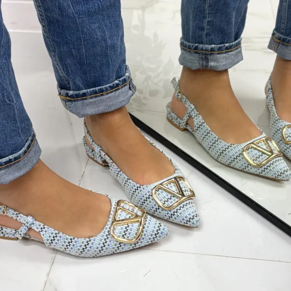 Primi Tacchi Corinne – Scarpa Donna Ballerina Punta Tacco Basso Elegante Celeste Fashion