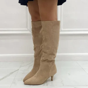 COLORE: BEIGE Questo stivale alto, è un accessorio davvero unico ed inimitabile nelle sue caratteristiche. Indossato si posa perfettamente sul piede e la gamba della donna che l’utilizza, regalandole comodità e personalità, due caratteristiche che ogni donna ricerca in un accessorio. Le sue peculiarità sono: la punta, il tacco alto circa 7 cm, altezza gambale 40 cm, il tessuto eco camoscio, la mezza cerniera e hanno una calzata regolare. Possono essere accostati capi come: gonne, shorts, vestitini ed ecc…