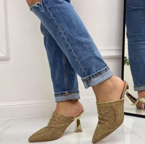 Primi Tacchi Gemma – Décolleté Donna Tacco Spillo Punta Strass Oro Fashion