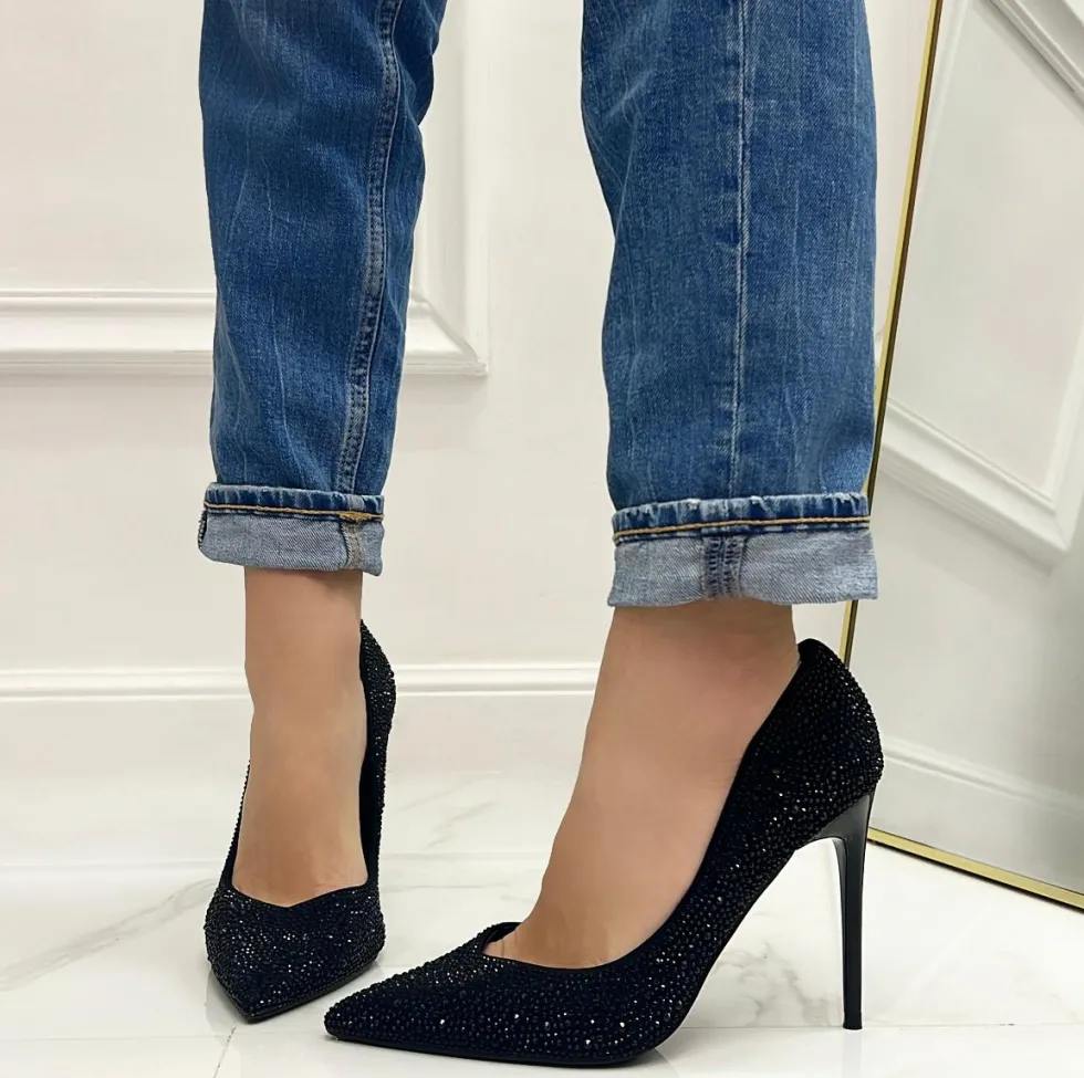 Primi Tacchi Gloss – Scarpe Décolleté Strass Elegante Tacco Nero Outlet