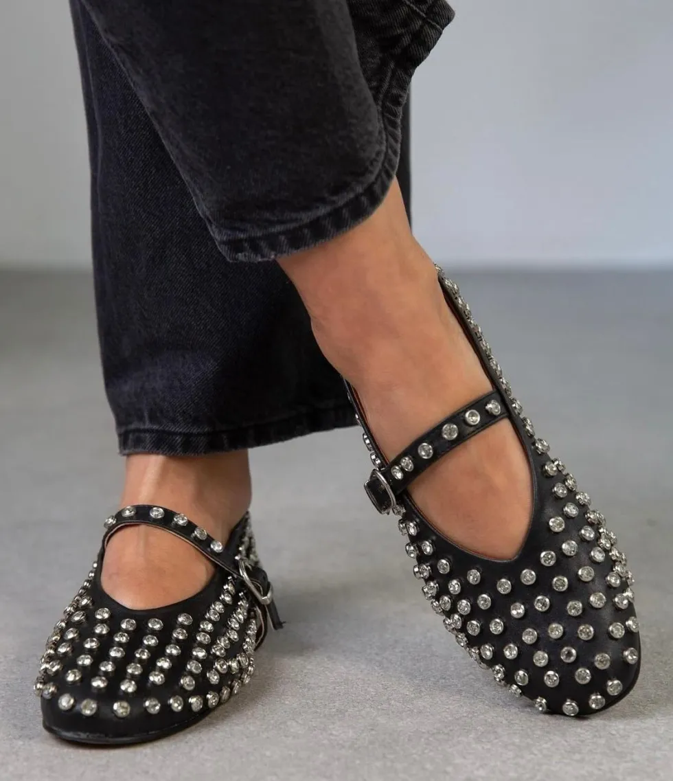 Primi Tacchi Haven – Scarpe Donna Ballerine Cinturino Borchie Casual Nero Best