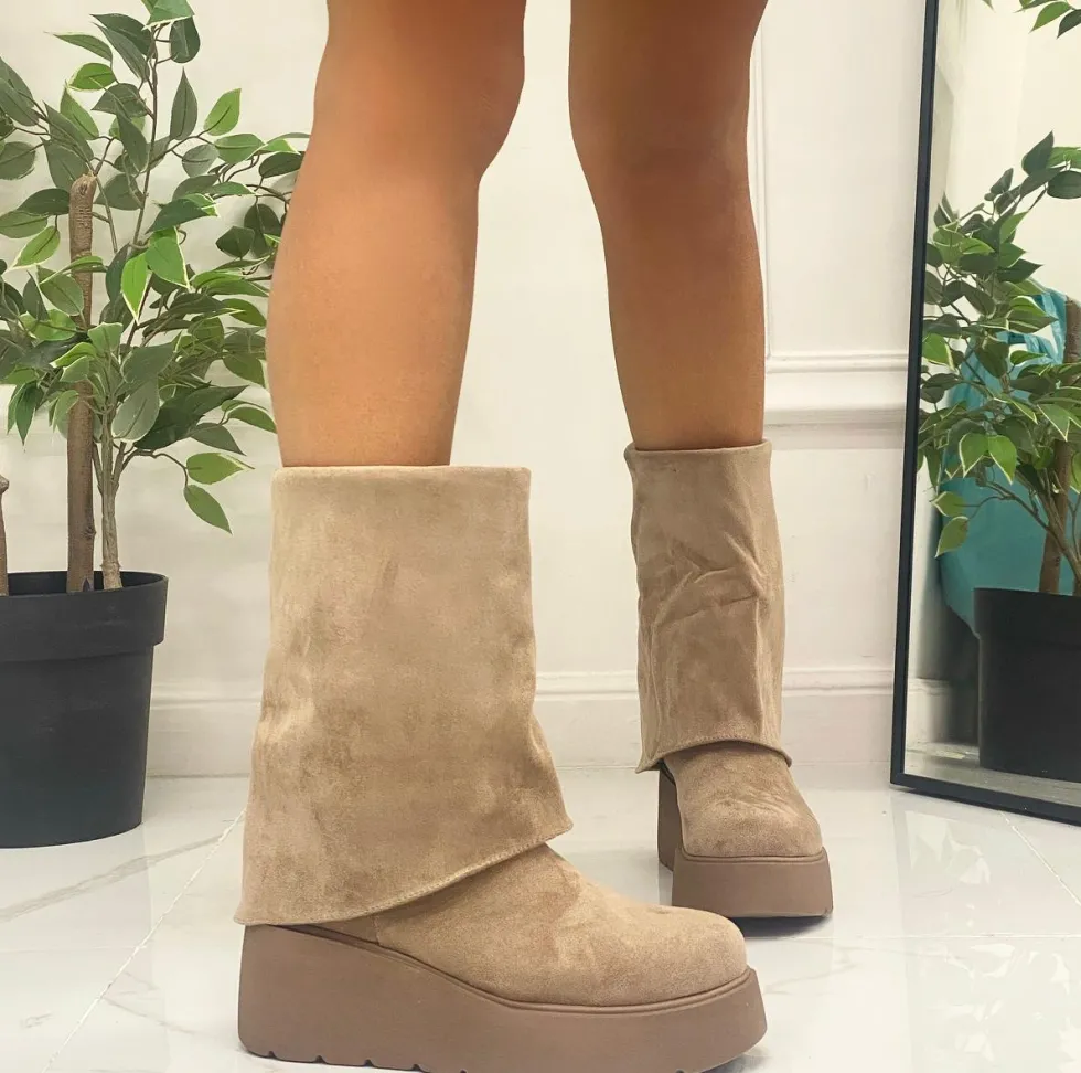 COLORE: KHAKI Questo stivale dona al piede un effetto elegante e particolare. Le sue caratteristiche sono: la punta tonda, la zeppa alta 7 cm, il gambale 24 cm e il tessuto in ecopelle scamosciato. Non ti stancherai mai di indossarli e sarai sempre all’ultima moda e cool, un accessorio così ti farà sentire stupenda in ogni circostanza. Perfetto per abiti corti, gonne Jeans o pantaloni. Può essere adatto per eventi come: feste, party, cocktail party, brunch e cerimonie. Hanno una calzata regolare.