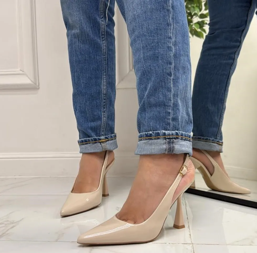 COLORI: NUDE – GIALLO – MARRONE – VERDE- NEROQuesto decolleté è un accessorio davvero elegante ed unico nel suo genere. Indossato, adorna perfettamente l’abito della donna che l’utilizza. Le particolarità di queste scarpe sono: il tacco a spillo alto 10 cm , il tessuto in vernice e la punta, che rendono il piede bellissimo e la donna che le indossa davvero unica. Può essere adatto in circostanze eleganti o casual , come cerimonie, party, feste, serate danzanti o cene.