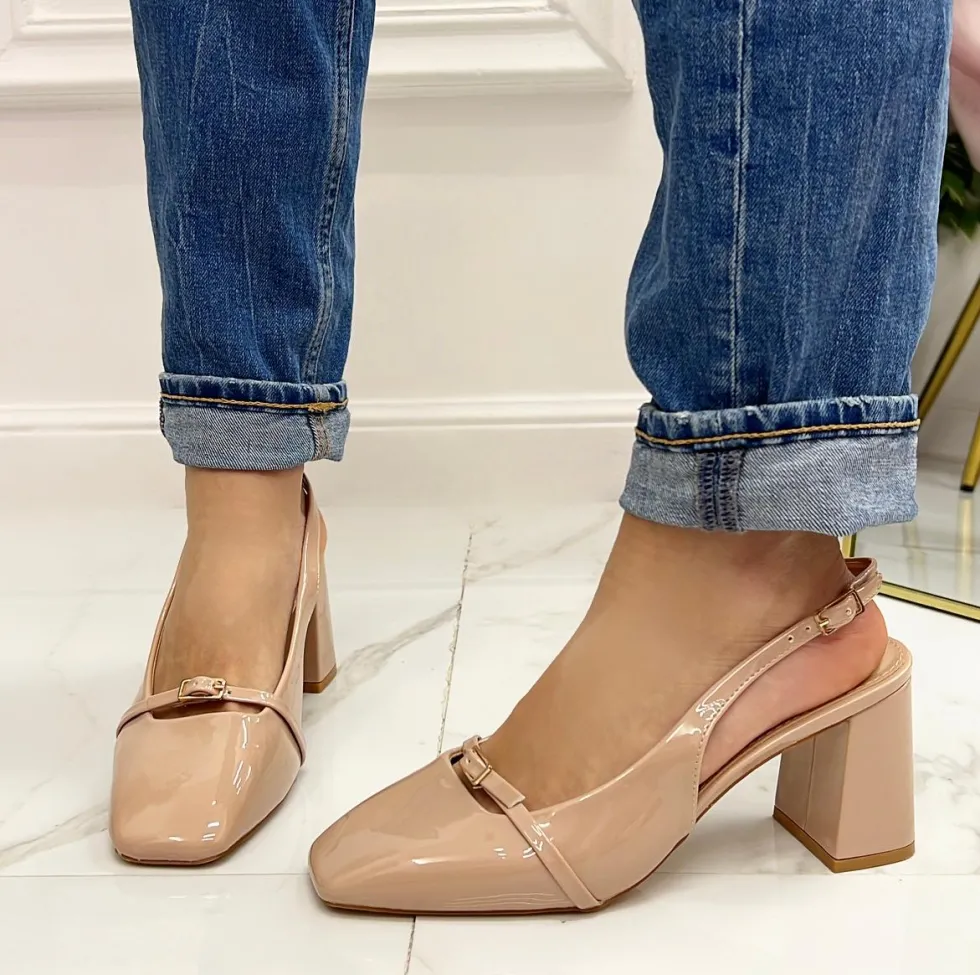 Primi Tacchi Lisa – Décolleté Donna Scarpa Cinturino Tacco Quadrato Elegante Nude Fashion