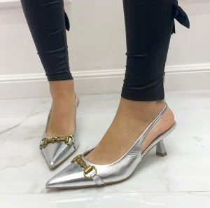 Primi Tacchi Madeleine – Decolleté Donna Punta Scarpa Tacco Basso Argento Clearance