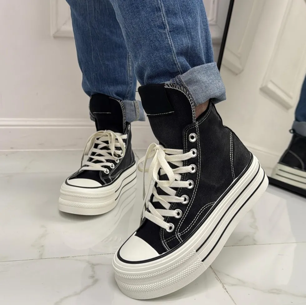 COLORI: NERA – BORDEAUX – JEANSPer affrontare le tue giornate lavorative, o per fronteggiare giornate impegnative, ti proponiamo questa stupenda sneakers. Indossata si posa al piede con comodità, elemento portante che ogni donna ricerca per sentirsi spensierata. Le sue peculiarità sono: la punta tonda, la zeppa alta 4 cm e mezzo, il gambale 11cm ed i lacci . Possono essere affiancati a capi come: jeans, leggings, shorts ed ecc… Hanno una calzata regolare.