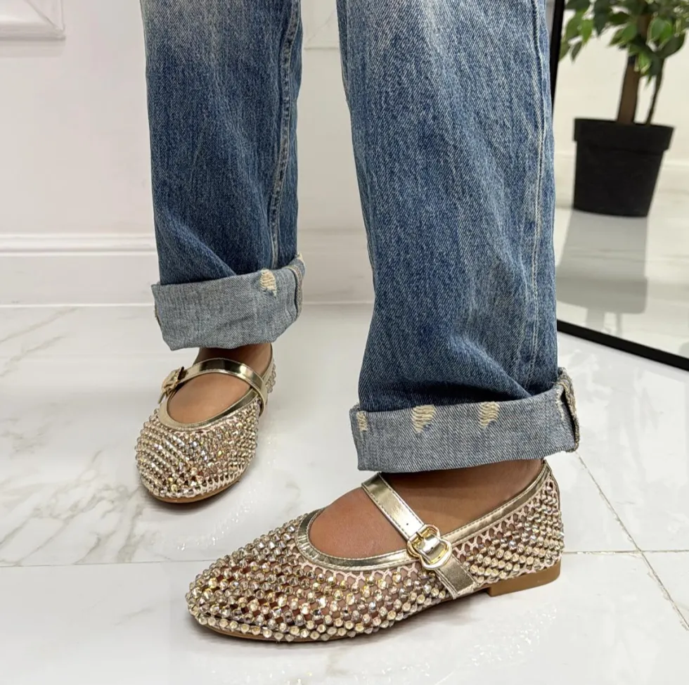 Primi Tacchi Marina – Scarpe Donna Ballerine Casual Strass Oro New