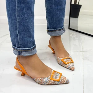Primi Tacchi Marlena – Décolleté Donna Cinturino Elastico Tacco Basso Elegante Aran ARANCIONE New
