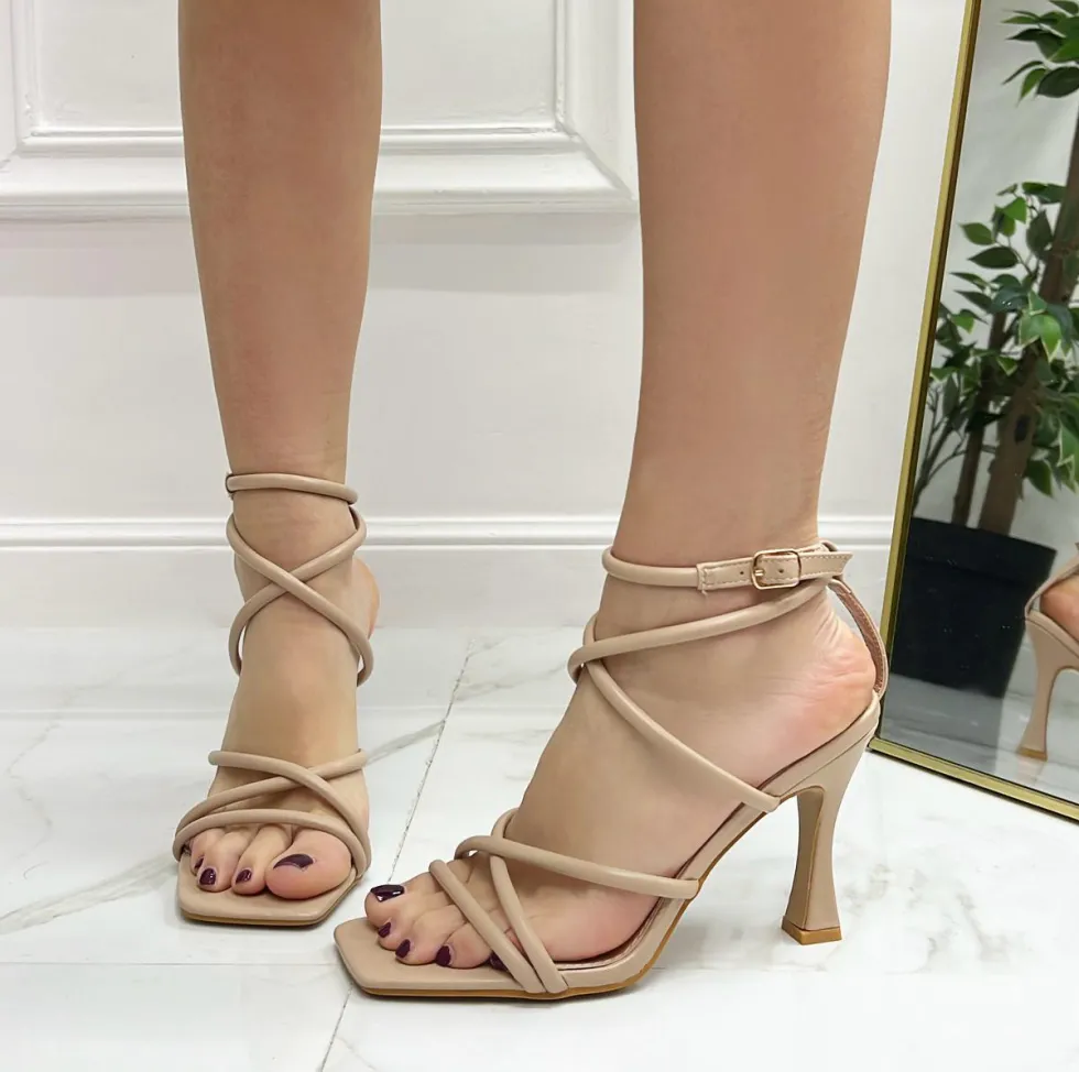 Primi Tacchi Megan – Sandalo Donna Scarpe Tacco Punta Quadrata Beige Best