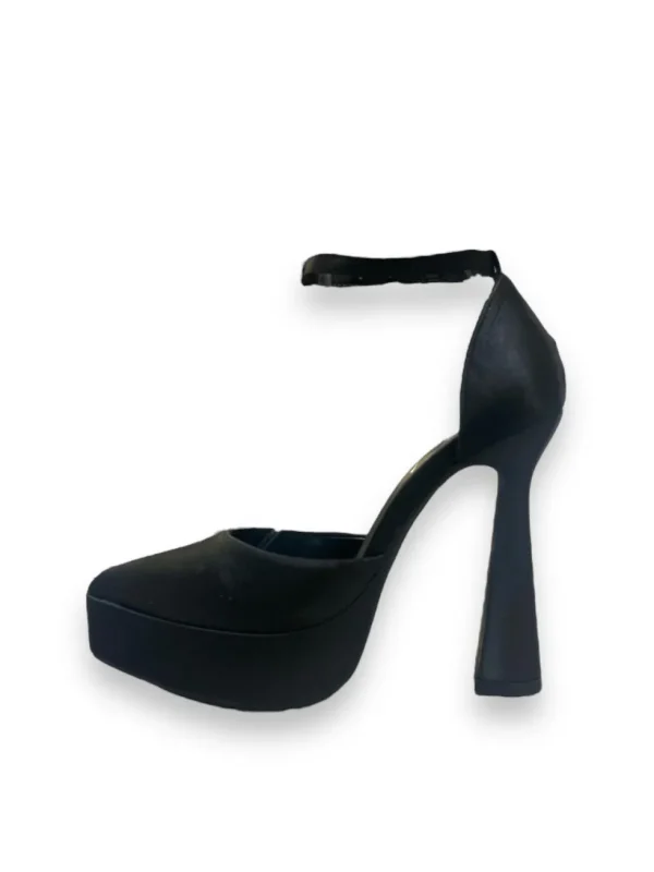 COLORE: NERO Questo classico decolleté è un accessorio davvero elegante ed unico nel suo genere hanno una calzata regolare. Indossato, adorna perfettamente l’abito della donna che l’utilizza. Le particolarità di queste scarpe sono: il tacco quadrato, materiale raso, cinturino alla caviglia e la punta, che rendono il piede bellissimo e la donna che le indossa davvero unica. Il tacco è alto 12 cm e il plateau 3 cm. Può essere adatto in circostanze eleganti, come cerimonie, party, feste, serate danzanti o cene in dolce compagnia.