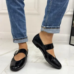 Primi Tacchi Pamela – Scarpe Donna Ballerine Cinturino Comode Lucido Nero Sale