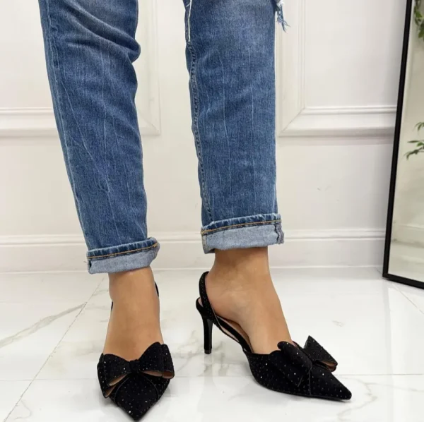 COLORI: NERO – BORDEAUX – CHAMPAGNE Per affrontare le proprie giornate lavorative, o per sentirti comoda nell’affrontare le serate più impegnative, ti proponiamo questa stupenda ballerina stile casual-elegante. Le sue peculiarità sono: la punta, il tacco alto 8 cm ed il fiocco centrale. Hanno una calzata regolare. Possono essere accostati capi come: jeans, pantaloni classici, gonne, short ed ecc… E’ adatto per affrontare giornate easy o serate impegnative