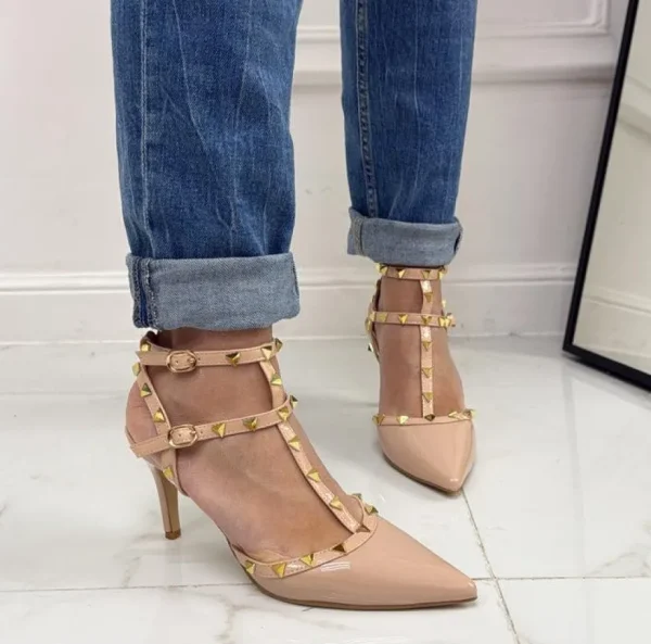 Primi Tacchi Rosalia – Décolleté Donna Cinturino Tacco Spillo Basso Borchie Elegant NUDE Fashion