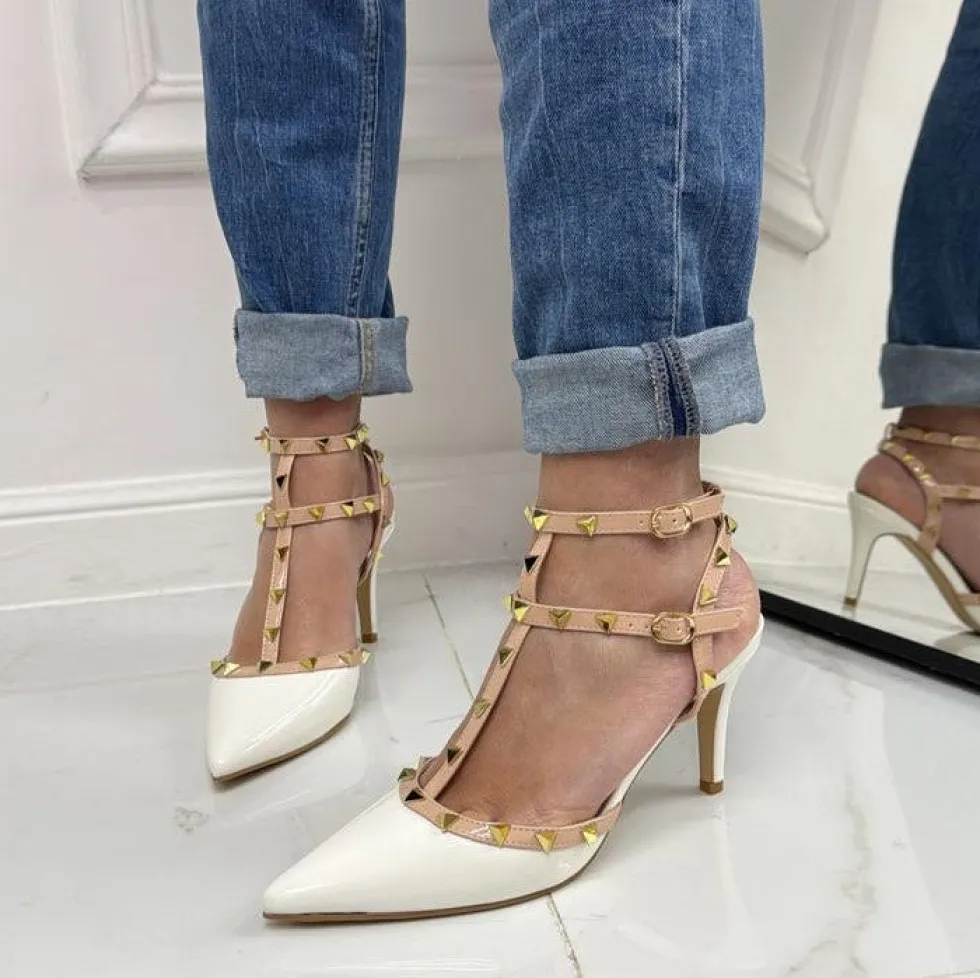 Primi Tacchi Rosalia – Décolleté Donna Cinturino Tacco Spillo Basso Borchie Elegant Sale