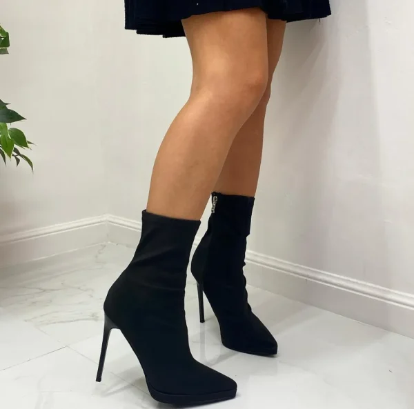 COLORI: NERO – BEIGE Questo stivaletto è un accessorio che non può mai mancare nel guardaroba femminile.. Indossato accompagna perfettamente il capo della donna che utilizza, regalandole comodità e sex-appeal, due caratteristiche che ogni donna ricerca in un accessorio. Le sue particolarità sono: il tacco a spillo 12 cm, la punta e il tessuto in lycra. Può essere adatto per qualsiasi momento della giornata in cui decida di utilizzarlo e per eventi importanti. Possono essere abbinati capi come: shorts, gonne, vestitini, gonnelloni ed ecc.. Hanno una calzata regolare.