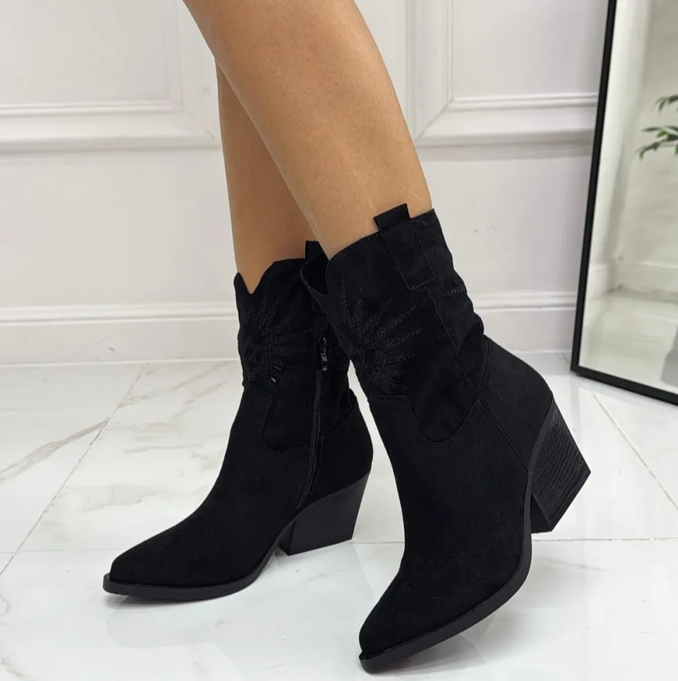 Primi Tacchi Texas – Stivale Donna Texano Basso Tacco Punta Nero New