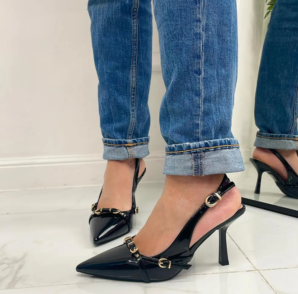 COLORI: NERO – NUDEQuesto decolleté è un accessorio davvero elegante ed unico nel suo genere. Indossato, adorna perfettamente l’abito della donna che l’utilizza. Le particolarità di queste scarpe sono: tacco alto circa 10 cm, tessuto vernice, punta che rendono il piede bellissimo e la donna che le indossa davvero unica. Può essere adatto in circostanze eleganti, come cerimonie, party, feste, serate danzanti o cene. Ha una calzata regolare.